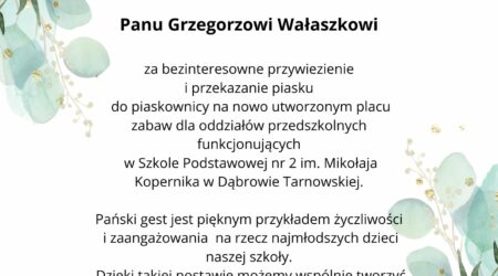 Podziękowanie dla Pana Grzegorza Wałaszka