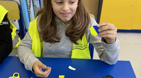 Uczniowie klasy 7a przygotowali odblaskowe gry planszowe