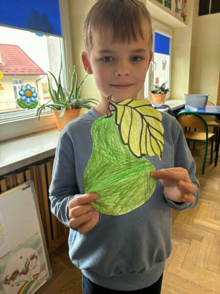 Świetliki z wielkim zainteresowaniem obejrzały film edukacyjny o gruszkach i dowiedziały się wielu ciekawostek na temat tego smacznego i zdrowego owocu. Następnie uczniowie z zaangażowaniem kolorowali tematyczne kolorowanki.