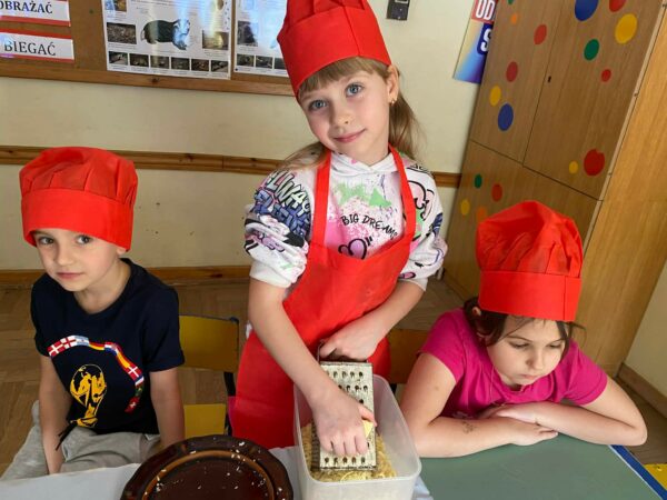 Z okazji Dnia Pizzy na szkolnym kółku kulinarnym „Gotuj z pasją” uczniowie klasy 1c przygotowali pyszne mini pizze. Samodzielnie wyrabiali ciasto, dobierali ulubione dodatki i z dużym zaangażowaniem tworzyli własne kompozycje smakowe. Wspólne gotowanie było świetną zabawą oraz okazją do nauki współpracy i rozwijania kulinarnych umiejętności.