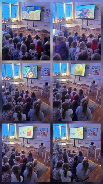 Dzieci rozmawiały o ziemniakach, oglądały je z bliska, dotykały i poznawały ich różne kształty oraz faktury. Obejrzały także ciekawy film o tym, jak wygląda proces produkcji ziemniaków – od sadzenia aż po zbiory.