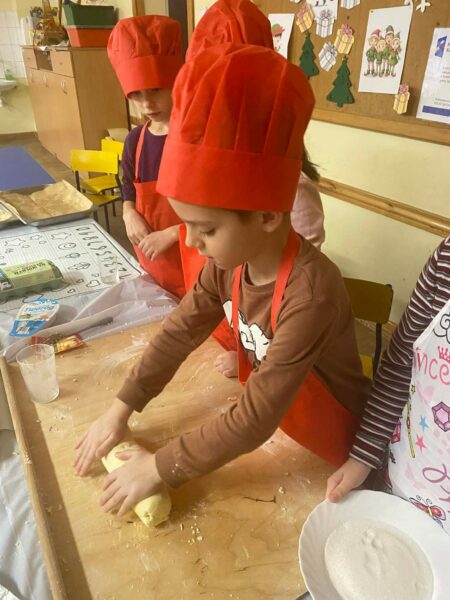 Na zajęciach „Gotuj z Pasją” klasa 1C miała okazję sprawdzić swoje kulinarne zdolności, piekąc serowe ciasteczka! Dzieci z entuzjazmem przystąpiły do pracy, starannie mieszając składniki i formując ciasteczka, które wkrótce zagościły w piekarniku. Atmosfera była radosna i pełna energii – wszyscy pracowali razem, a efekty ich pracy już wkrótce miały okazać się pyszne.