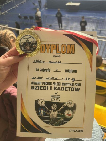 Z ogromną radością gratulujemy naszemu uczniowi — Wiktorowi Burzawie — zdobycia złotego medalu Pucharu Polski w tajskim boksie Muay Thai!