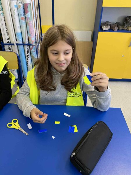 Podczas zajęć rozmawialiśmy o bezpieczeństwie pod hasłem ,,Świeć przykładem- bądź bezpieczny” .🚦💡Pod koniec zajęć uczniowie mieli okazję stworzyć i zaprojektować odblaskowe breloczki🤩, które od razu przypięli do plecaków szkolnych, pokazując, jak ważne jest bycie widocznym na drodze. 🦺