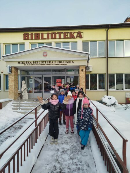 Po długim oczekiwaniu, wreszcie dziś, 14 stycznia, uczniowie klasy 2c mieli okazję uczestniczyć w zajęciach bibliotecznych pt. „Trójkąty ukryte w bajkach”. Spotkanie odbyło się w Oddziale dla Dzieci MBP w Dąbrowie Tarnowskiej i było długo wyczekiwaną atrakcją dla młodych czytelników.