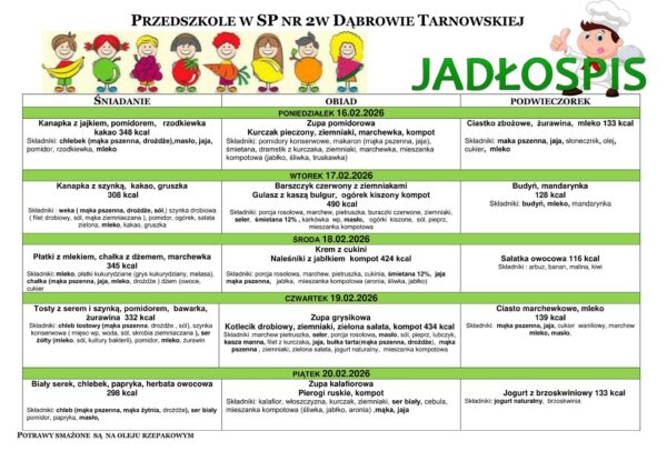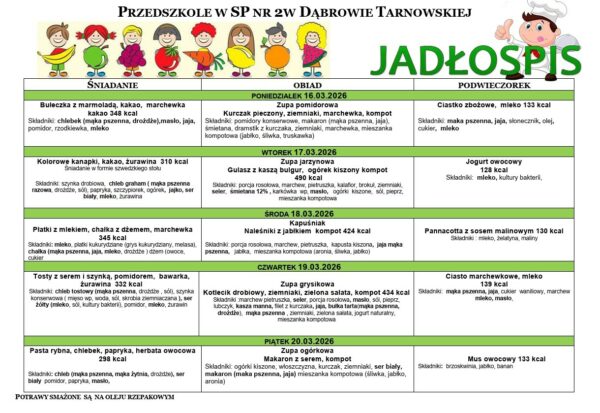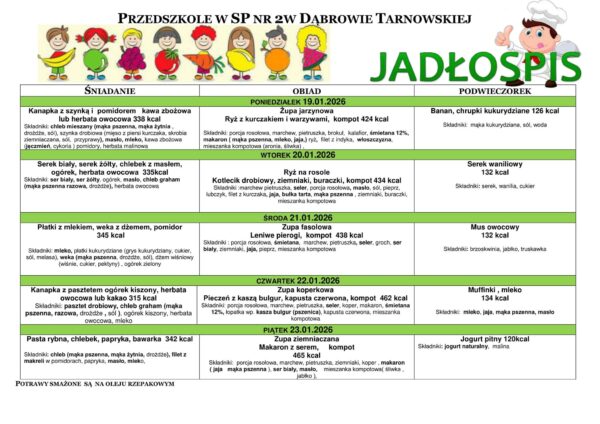 Jadłospis oddziałów przedszkolnych