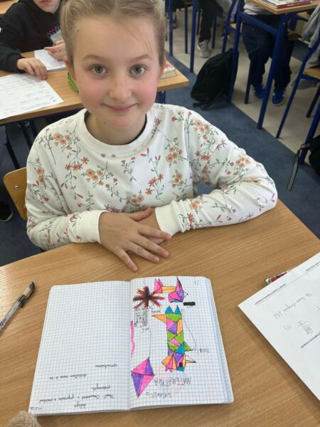Ta lekcja pokazała, że matematyka potrafi być nie tylko logiczna, ale też twórcza. A linijka i ekierka w rękach czwartoklasistów mogą zamienić się w prawdziwe narzędzia artysty. 📐✨