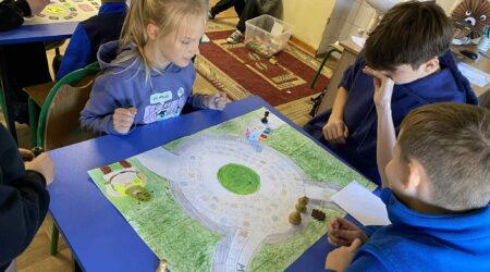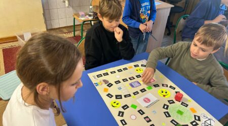Uczniowie klasy 7a przygotowali odblaskowe gry planszowe