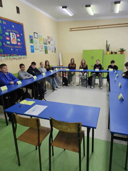 Zgodnie z założeniami Ogólnopolskiego Programu #SzkołaDobregoSłowa, w klasie 7b zamieniliśmy stres na zaangażowanie, organizując emocjonujący teleturniej „Jeden z Osiemnastu” zamiast tradycyjnej kartkówki z lektury „Mały Książę”. Lekcja przebiegała w wyjątkowo radosnej atmosferze. Uczniowie byli dobrze przygotowani, co potwierdziło, że wiedza może być sprawdzana z empatią i bez zbędnego napięcia. Powtórzyliśmy nie tylko materiał, ale także rozwijaliśmy umiejętności strategiczne. Serdecznie gratulujemy zwycięzcy!