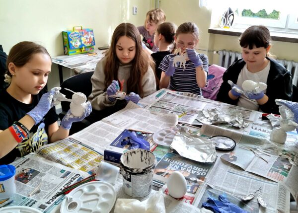 Tuż przed Wielkanocą członkowie Szkolnego Koła PCK wzięli udział w wiosennych warsztatach plastycznych. Uczestnicy zajęć wykonywali wielkanocne króliki oraz inne ozdoby z masy gipsowej, które później stały się jednym z elementów kompozycji, układanych na plastrach drewna. Powstałe prace wyróżniały się estetyką, starannością i pomysłowością. Uczniowie z dużym zaangażowaniem podjęli się zadania, dbając o każdy detal i nadając swoim kompozycjom indywidualny charakter. Przygotowane stroiki i ozdoby zostały przeznaczone na cele charytatywne oraz jako upominki, stanowiąc jednocześnie piękny gest życzliwości.