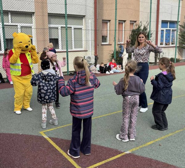 Podczas spotkania dzieci z uśmiechem na twarzy uczyły się, jak ważne są odblaski, a wspólne tańce z Kubusiem Puchatkiem dostarczyły mnóstwo pozytywnej energii.
