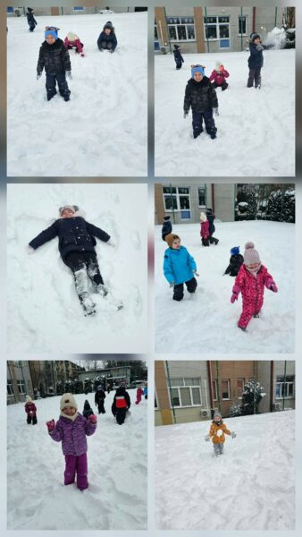 Zawitała do nas prawdziwa zima. Był mrozik, śnieżek. Przedszkolaki cieszyły się z tego widoku. Biały puszek pozwolił na zabawy na boisku szkolnym. Dzieci zażyły ruchu na świeżym powietrzu. Przedszkolaki szalały z radości, rzucały się śnieżkami, robiły orzełki, aniołki, turlały się po śniegu, chodziły po swoich śladach, a uśmiechy nie schodziły im z twarzy. Tropicieli i Odkrywcy zbadały właściwości śniegu – co się z nim stanie gdy przyniosą go do przedszkola? To były wesołe wyjścia i miejmy nadzieję, że śnieg jeszcze zawita, a dzieciaczki powtórzą zimowe harce!